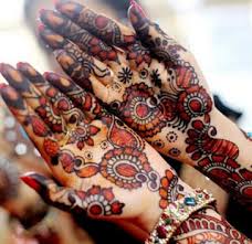 Mehndi is a colored temporary tattoo made with the help of henna on skin. Mehndi is incorporated in different styles and designs over hands and feet by women from different regions. It is considered as an additional ornament for enhancing a woman’s relinquished beauty. Mehndi is applied on special occasions like Wedding, Karwa chauth and Eid.